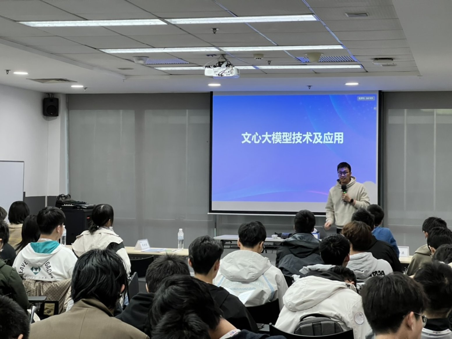 百度技术人员详细阐述了“文心一言”如何利用深度学习和海量数据训练,实现对中文语言的深刻理解和精准生成,特别是在中文理解和多模态生成能力上展现出的独特优势。同学们对“文心一言”的对话增强、知识增强技术以及检索增强功能表现出浓厚的兴趣,积极讨论这些技术如何提升模型的准确性和实用性,并进一步思考“文心一言”在智能客服、在线教育等多样化应用场景中的潜力,以及它如何塑造人类的未来生活。