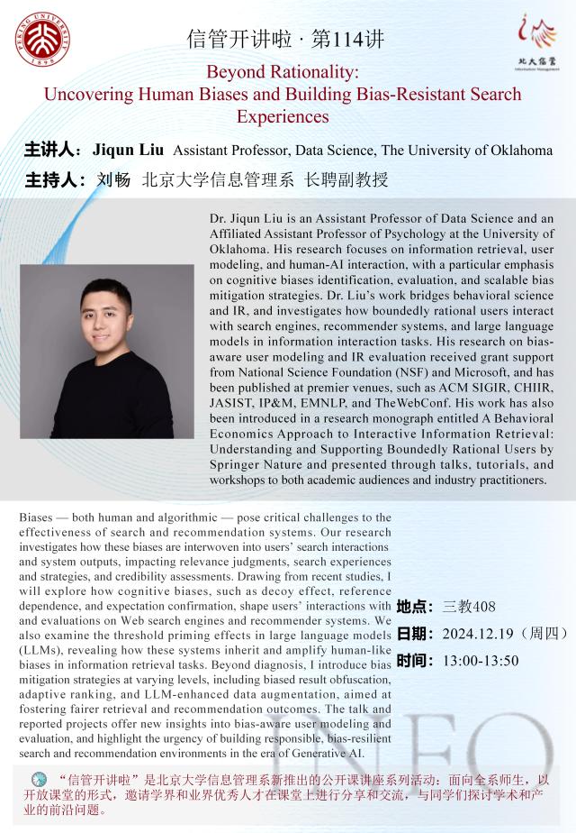 信管开讲啦·第114讲 | Beyond Rationality: Uncovering Human Biases and Building Bias-Resistant Search Experiences