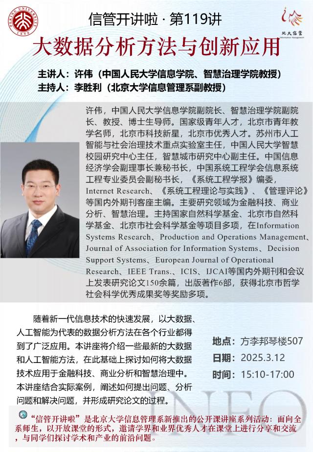 信管开讲啦·第119讲 | 大数据分析方法与创新应用