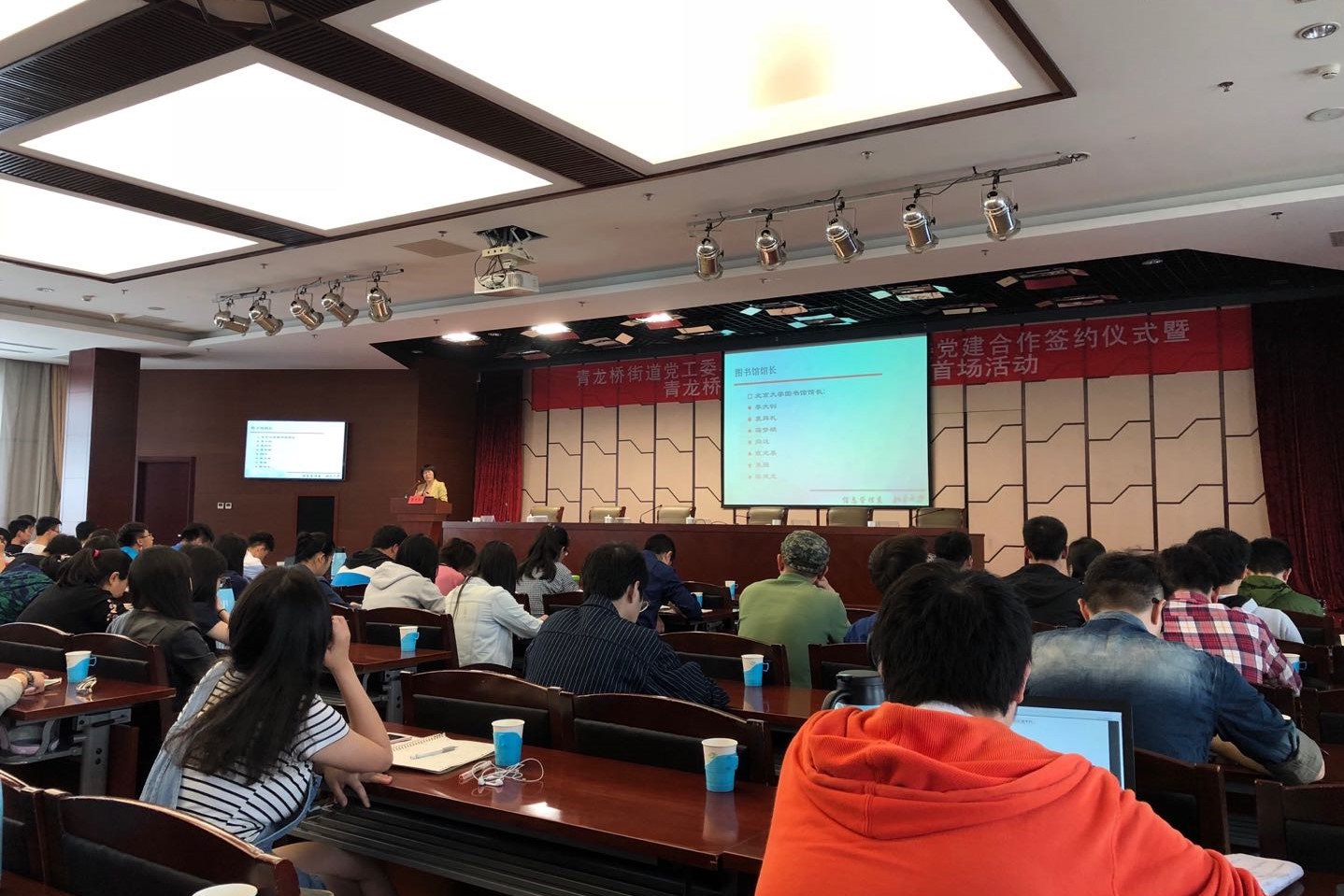 春和景明,百花齐放。为深入贯彻落实党的十九大精神,以党建带动文化建设,发挥信息管理系与青龙桥街道双方在人才、地域等方面的优势,既为师生的学习研究和社会实践创造条件,又助力提升街道公共文化服务水平,4月20日下午,信息管理系与青龙桥街道在北京邮电会议中心举办了党建合作签约仪式,开展全民阅读推广首场活动。信息管理系党委书记张久珍、副书记张妙妙、团委书记李杨,青龙桥街道党工委书记聂俊杰、副书记安玉霞、街道办事处副主任蔡曦亮,信息管理系师生党员代表,青龙桥街道文化骨干、党员和群众代表,共同参加了活动。