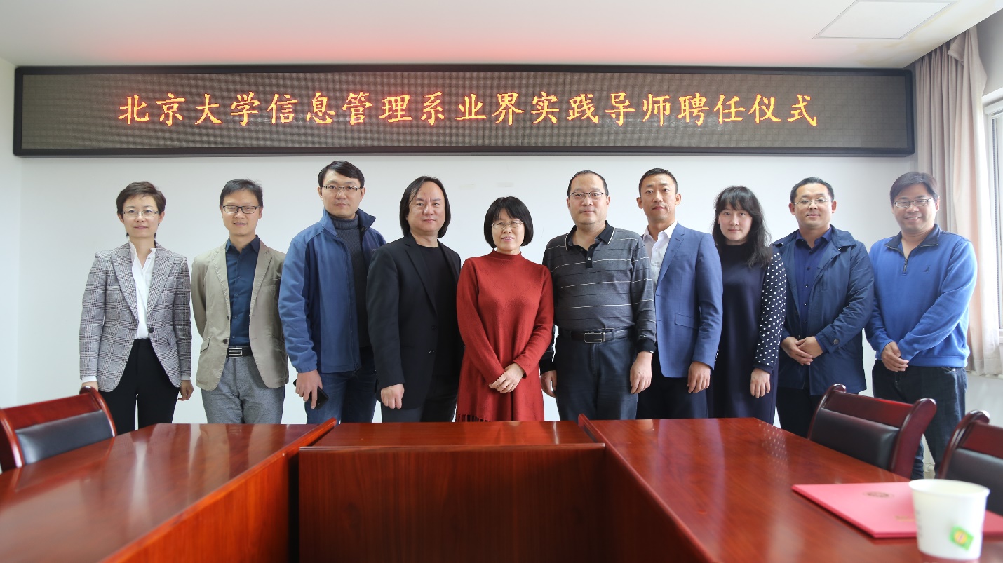10月30日,爱体育平台,爱体育(中国)一站式服务平台举行第一批业界实践导师聘任仪式及座谈会。自2020年9月起,我系聘请了具有丰富业界实践经验的优秀人才担任实践导师,旨在指导学生运用理论工具解决行业实际问题,形成与课堂教学和学术指导良性互补的培养路径。第一批业界实践导师代表,北京大学信息管理党委书记、系主任张久珍,副系主任徐扬、张鹏翼,系主任助理黄文彬等出席了聘任仪式。到场的业界实践导师代表有(以姓氏拼音为序):北京灵伴即时智能科技有限公司创始人兼CEO陈博、百分点集团数据科学总监杜晓梦、渶策资本创始合伙人胡斌、镭科光电CEO李阳、兴唐通信科技有限公司副总工刘尚焱、国家信息中心大数据发展部规划处处长王建冬、北京市科学技术情报研究所副所长吴晨生研究员。