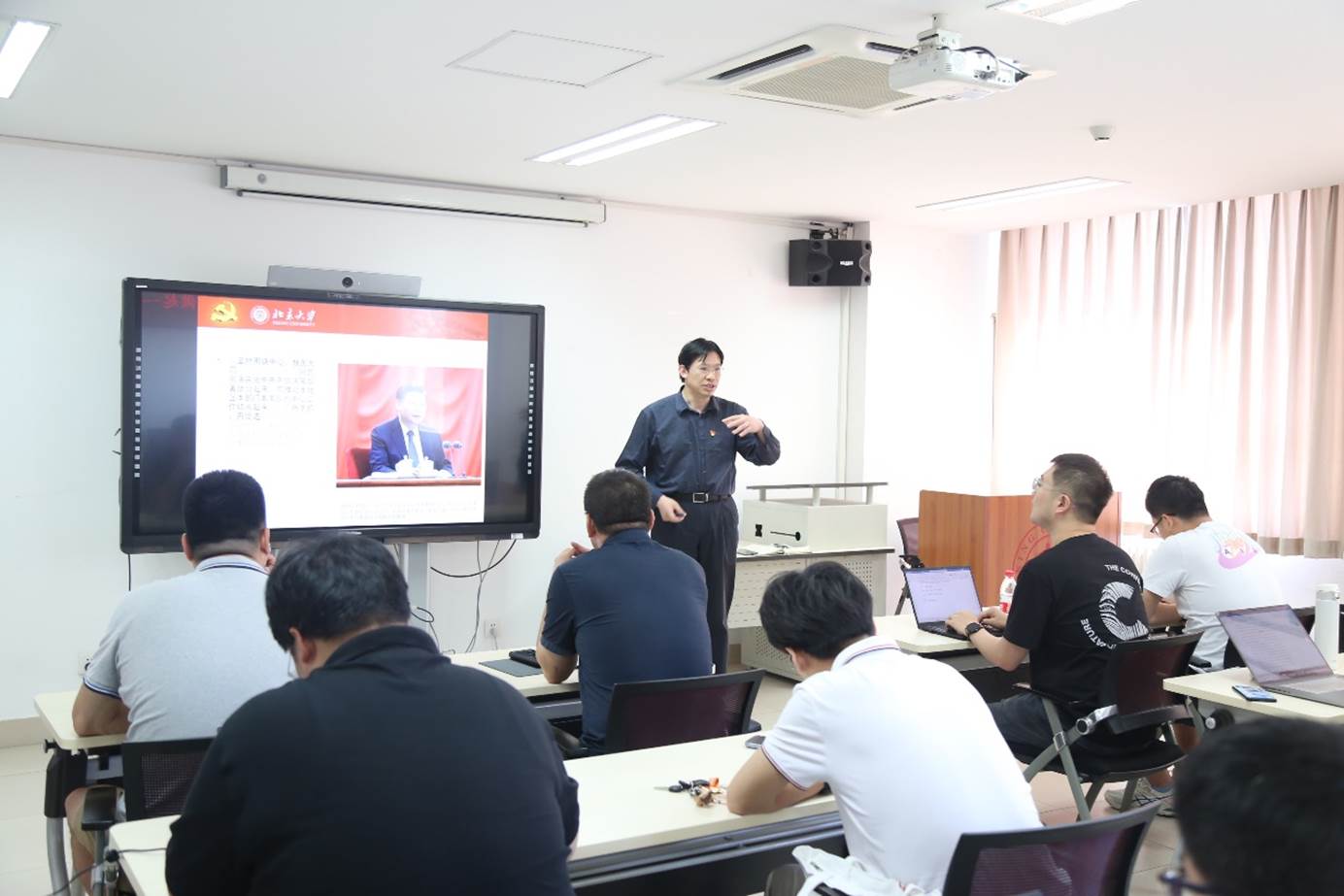 按照北京大学学习贯彻习近平新时代中国特色社会主义思想主题教育实施方案的总体部署,信息管理系积极落实党员领导干部讲授专题党课活动。6月8日上午,信息管理系党委书记李胜在方李邦琴楼414室以 “勇于担当、从我做起——关于高效管理的相关实践与思考”为主题讲授党课,系党委副书记张妙妙、教职工党支部委员、学生党支部书记、师生党员等20余人参加学习。