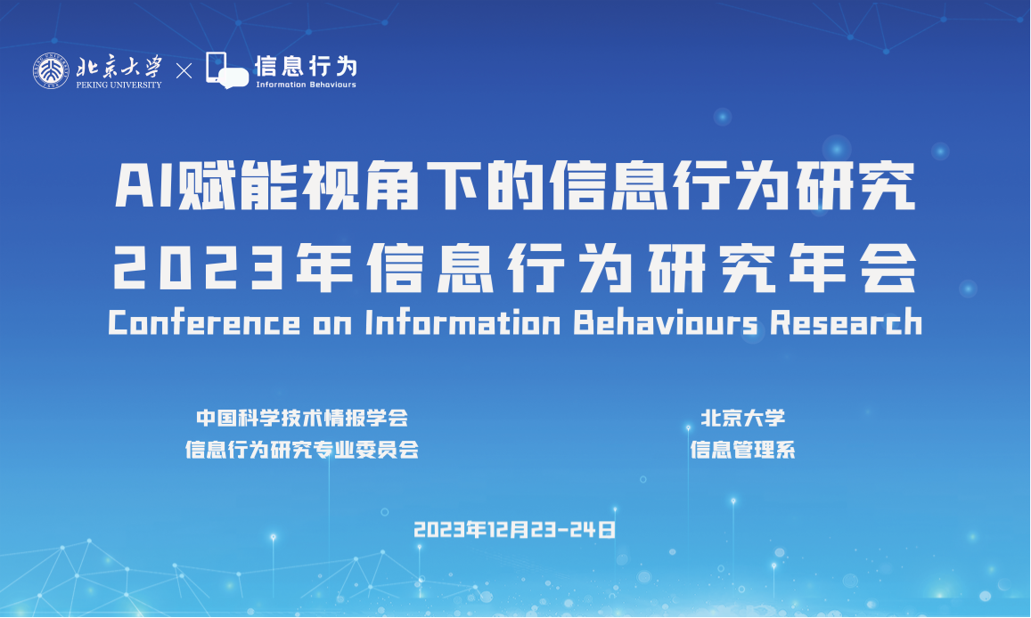 2023年12月23日至24日,2023年信息行为研究年会在北京大学成功举办。本次会议的主办单位为中国科学技术情报学会信息行为研究专业委员会,承办单位为爱体育平台,爱体育(中国)一站式服务平台,并得到了《中国图书馆学报》《情报学报》《大学图书馆学报》《图书情报工作》《图书情报知识》《情报资料工作》《情报理论与实践》《信息资源管理学报》《Data and Information Management》《农业图书情报学报》等期刊的大力支持。
