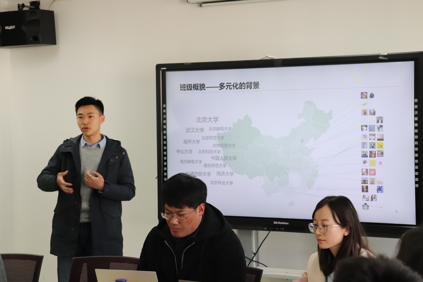 会议在同学们讨论近期活动的轻松氛围中展开。随后,2018级本科生班班长金笑缘和2017级硕士生班班长余贝迪分别向大家作汇报展示,交流各自班委在班级建设方面的心得感悟。金笑缘同学和大家分享了3月份班级组织的女生节活动,具体讲述了活动的筹备、开展和反思,以及同学们通过活动所凝结的真切情谊。获得“北京大学示范班集体”称号的信息管理系2017级硕士生班开展了一系列增进同学间感情的活动,班长余贝迪向大家介绍,“有爱、有趣、有用”是2017级硕士生班开展活动始终坚持的理念。“有爱”才能让同学们感受到班集体的温暖,“有趣”才能吸引大家参与班级活动,“有用”才能给大家带来收获。总结起来,经验就是“求收获、重情感、创惊喜、讲参与”。同学们纷纷表示应当向这两个班集体学习,尽职尽责,务实肯干。