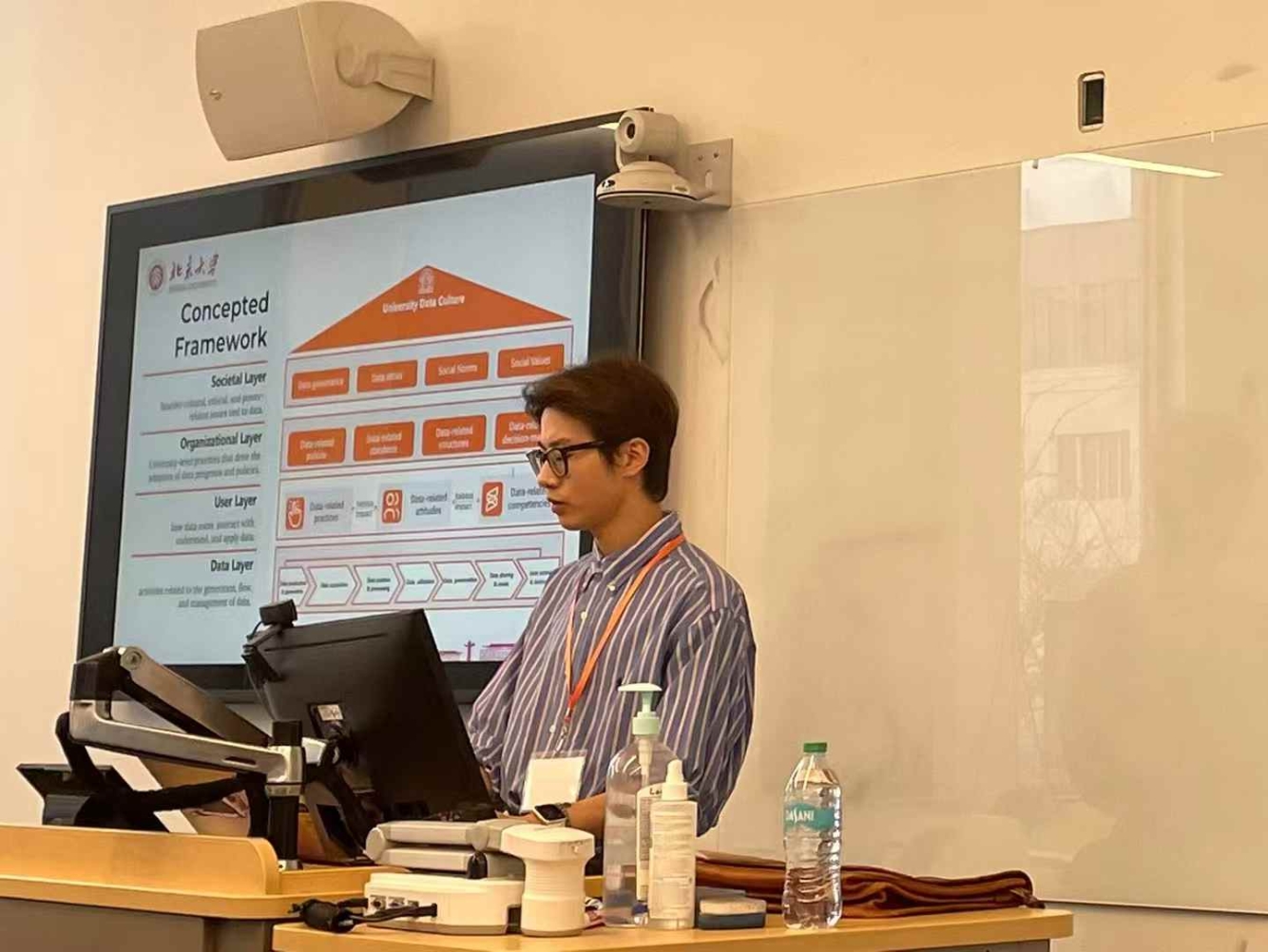 我系博士生唐筠杰汇报了主题为“Cultivating university data culture in the age of AI: A conceptual framework and critical reflections”的短文研究。该研究以人工智能时代为背景,提出了一个包含数据层、用户层、组织层和社会层的高校数据文化概念型框架,初步讨论了AI技术对高校数据治理、决策支持及师生行为的影响,呼吁在技术发展中注重包容性、公平性和责任意识,以推动高校数据文化的可持续发展。通过本次会议,我系师生广泛了解了信息科学领域的最新研究动态,学习了国际学者在人工智能与信息治理领域的研究经验,并与来自世界各地的学者进行了深入的学术交流。这不仅拓宽了学术视野,也进一步提升了对数据驱动型社会的认识和思考,为数智时代的科研工作积累了宝贵的经验与灵感。