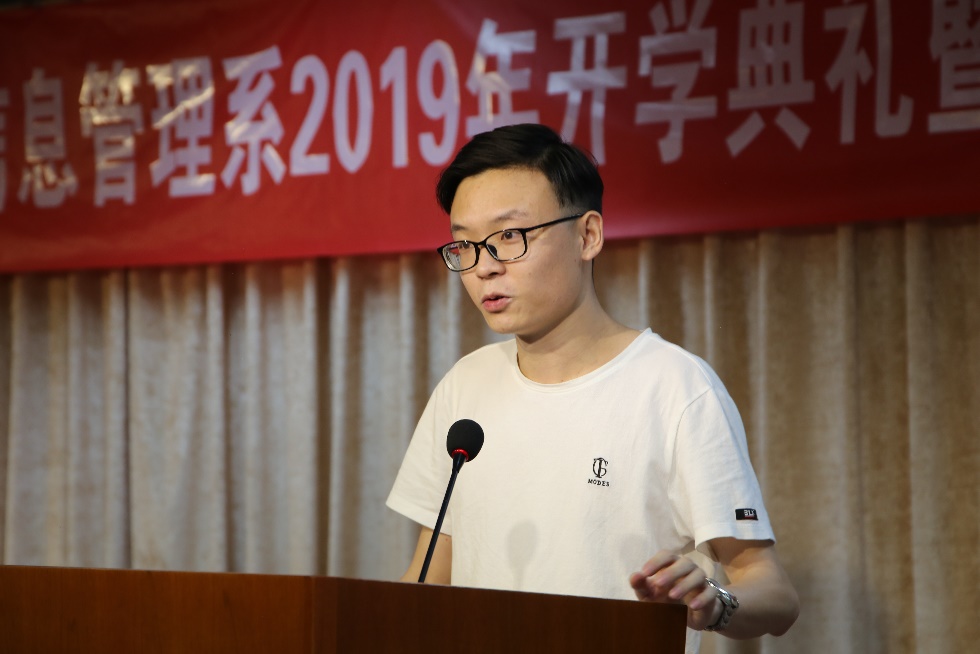 爱体育平台,爱体育(中国)一站式服务平台1988级系友、上海市浦东新区市场监管局副局长孙文先生,孙文先生夫人、爱体育平台,爱体育(中国)一站式服务平台1994级系友张丽虹女士,爱体育平台,爱体育(中国)一站式服务平台党委书记、系主任张久珍老师,副系主任、2019级本科一班班主任徐扬老师,副系主任张鹏翼老师,王继民老师,王益明老师,韩圣龙老师,黄文彬老师,2019级本科二班班主任李胜利老师,化柏林老师,李世娟老师,系团委书记、2019级博士生班班主任李派老师,系学工办副主任、团委副书记张恂达老师,以及信息管理系2019级本科生、研究生出席了开学典礼。典礼由系党委副书记、2019级硕士生班班主任张妙妙老师主持。