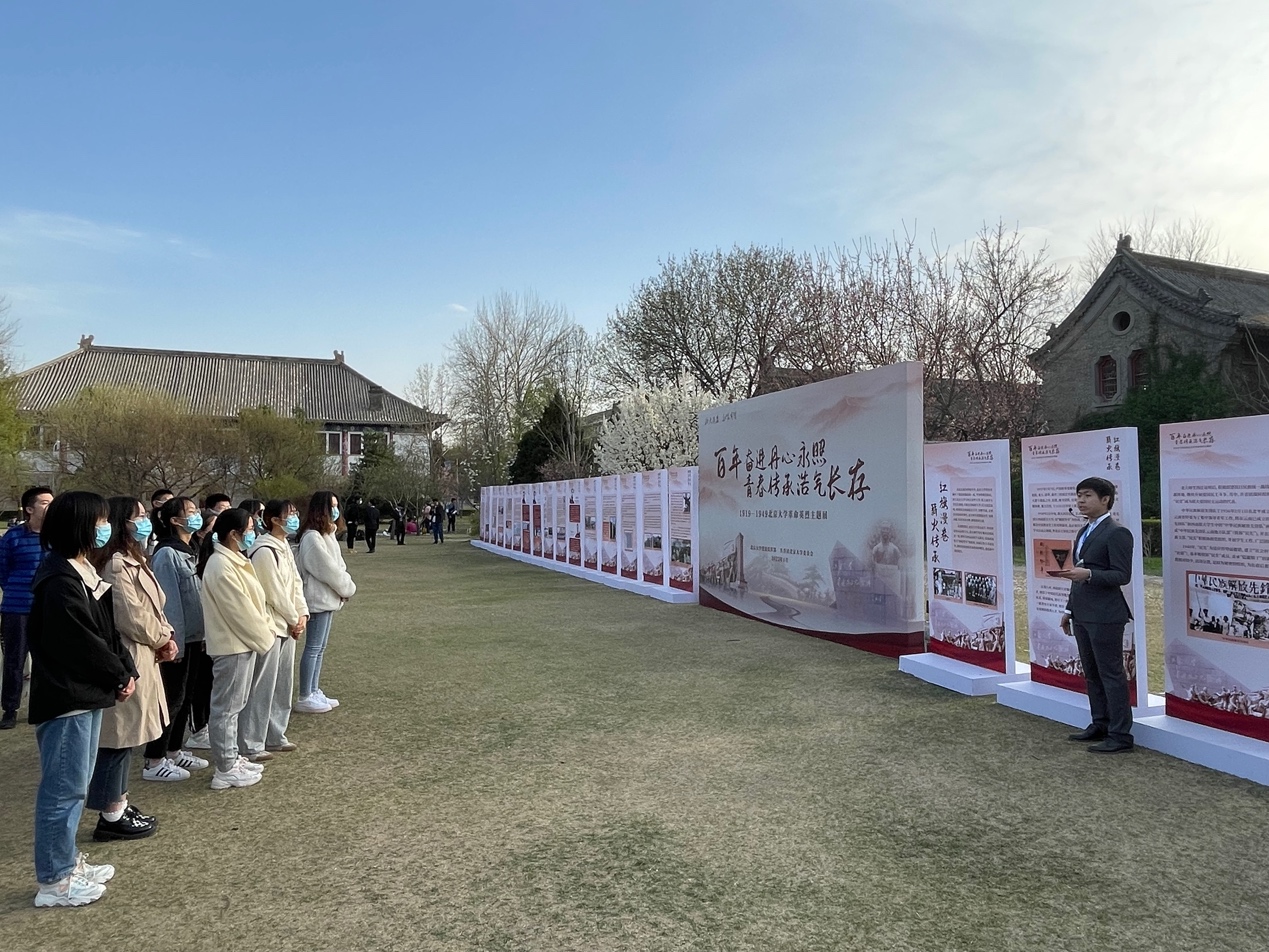 随后党员同志们来到静园草坪参观“百年奋进丹心永照,青春传承浩气长存”——1919-1949北京大学革命英烈主题展,重温先辈一路走过的峥嵘岁月,追念英雄舍生忘死的浩然正气。展览分为“东方欲晓星火照耀”、“雄关漫道炬火高擎”和“红旗漫卷薪火传承”三个部分展现了新民主主义革命时期,一批批意志坚定的北大师生从北京大学走出,高举理想旗帜,踏遍江南塞北,用斗争与牺牲播撒共产主义的星火,铺开救亡图存的道路。“崇尚英雄才会产生英雄,争做英雄才能英雄辈出。”新时代信管青年赓续百年奋进中代代相传的红色血脉,并以此鼓舞斗志、指引方向,始终坚定信念、凝聚力量,继往开来、开拓前进!