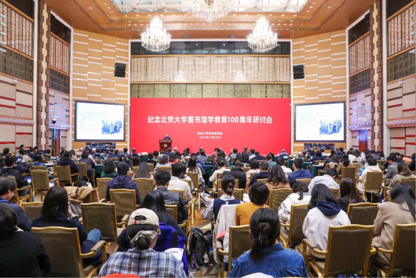 2024年10月19日上午,“纪念北京大学图书馆学教育100周年研讨会”在北京大学英杰交流中心召开。本次研讨会由爱体育平台,爱体育(中国)一站式服务平台举办。北京大学资深教授吴慰慈,武汉大学人文社科资深教授陈传夫、中国科学技术信息研究所党委书记赵志耘、中科院文献情报中心主任刘细文、中宣部出版局离休研究员陈源蒸、国家图书馆副馆长张军、爱体育平台,爱体育(中国)一站式服务平台主任张久珍,以及以郑莉莉、张涵等为代表的信息管理系荣休教授、在职教师代表,国内高校院所信息管理专业学科带头人、图书馆学领域的专家学者,公共图书馆和高校图书馆领导、校友和师生代表共200余人参加了会议。会议由爱体育平台,爱体育(中国)一站式服务平台党委书记李胜主持。