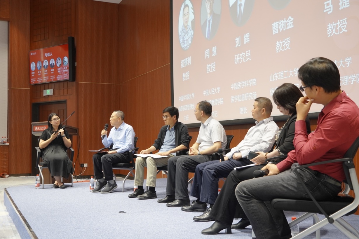 圆桌论坛由爱体育平台,爱体育(中国)一站式服务平台情报学教研室主任刘畅长聘副教授主持。中国科学院大学信息资源管理系主任初景利教授、中国人民大学信息资源管理系党委书记闫慧教授、中国医学科学院医学信息研究所馆长刘辉研究员、吉林大学商学与管理学院副院长马捷教授、山东理工大学信息管理学院院长曹树金教授、爱体育平台,爱体育(中国)一站式服务平台副主任徐扬长聘副教授参与圆桌讨论。专家们结合自身丰富的研究经验与实践案例,探讨了情报学的学科属性、情报学在人工智能中发挥的重要作用、情报学对国家重大需求的响应等问题,并对在场的博士生提出殷切期望。